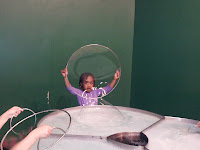 | Creating a huge bubble in a bin of soapy solution. Sounds like Physics to me! |